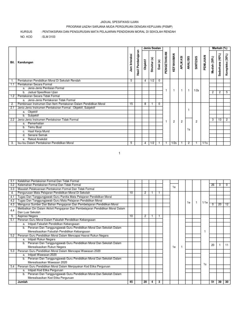 Jadual Spesifikasi Ujian Pendidikan Moral Rahiem Pdf