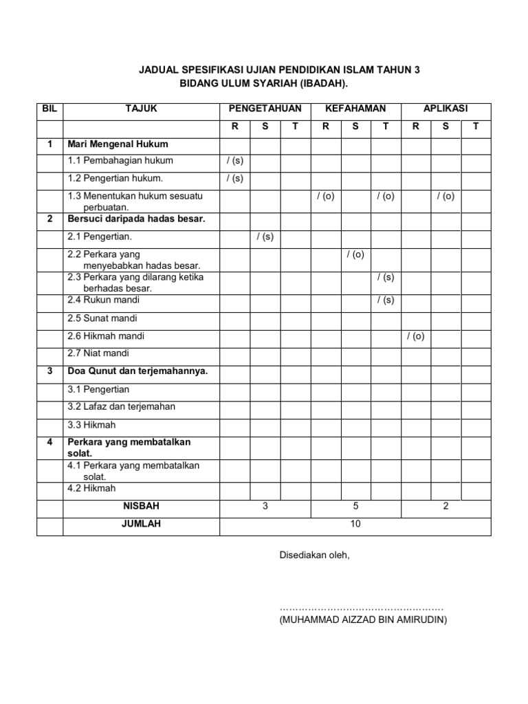 Pdf Jadual Spesifikasi Ujian Pendidikan Islam Tahun 2 2014 Aziroh Puteh Academia Edu