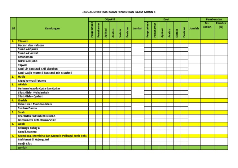 Jadual Spesifikasi Ujian Pendidikan Islam Tahun 3 Baru Pdf
