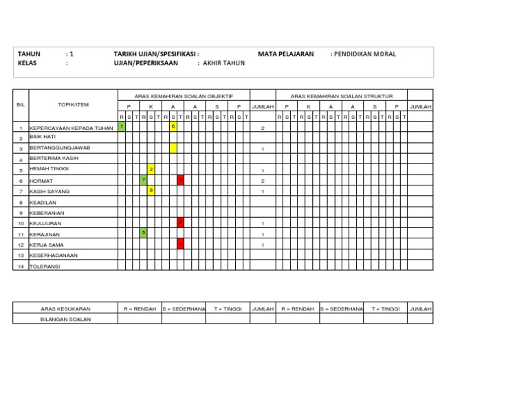 Contoh Jadual Spesifikasi Ujian Pendidikan Moral Pdf
