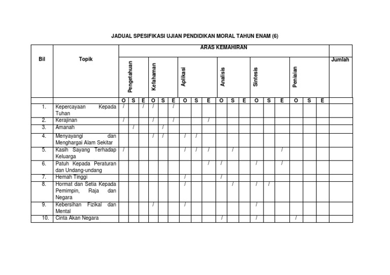 Jadual Spesifikasi Ujian Pendidikan Moral Tahun Enam Pdf