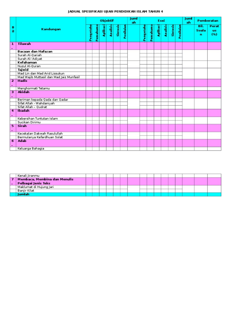 . Tarikh pelaksanaan mulai 21 November sehingga 3 Disember 2021. Pembinaan item Pendidikan Islam. Contoh Membuat Jadual Spesifikasi Ujian Hafiz Pk.
